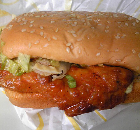 鶏バーガーはやはりスパイシーで牛肉バーガーとはまた違う味付け。
