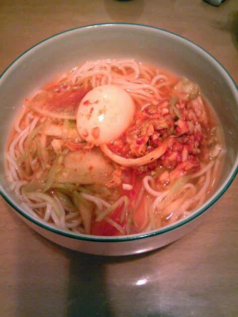 今日のお昼は自家製の冷やしラーメン韓国風です。