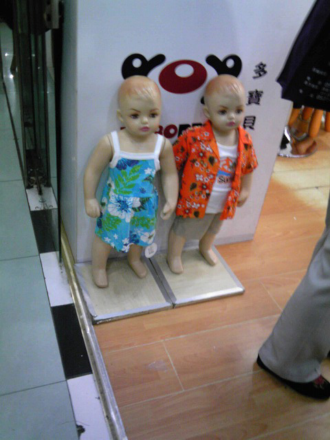 中国の洋服屋さんでみるマネキンは怖いものが多いのです。