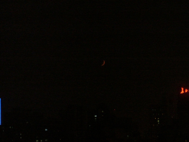 昨日の晩、何気なく外を見ていたら、赤い三日月を見ました。