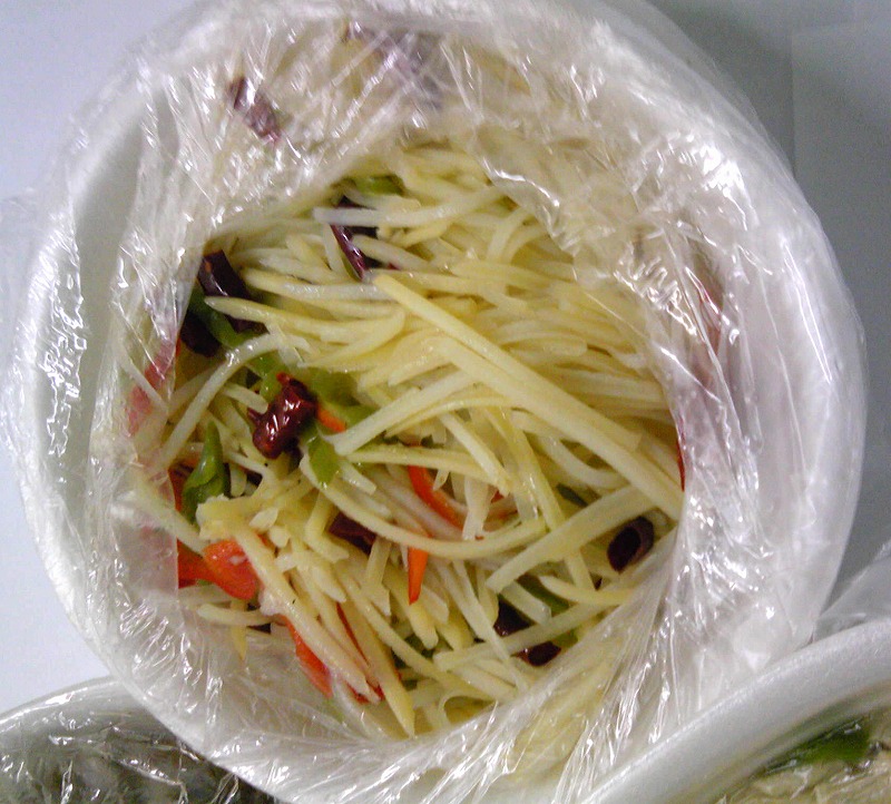 三つ目は間違いのものです。頼んだものは白菜と唐辛子に若干酸味があるものを頼んだのですが、来たものは白菜の代わりにじゃがいもでした。味付けはいつもの通りだったのですが…。でもおいしかったから"良し"としました。